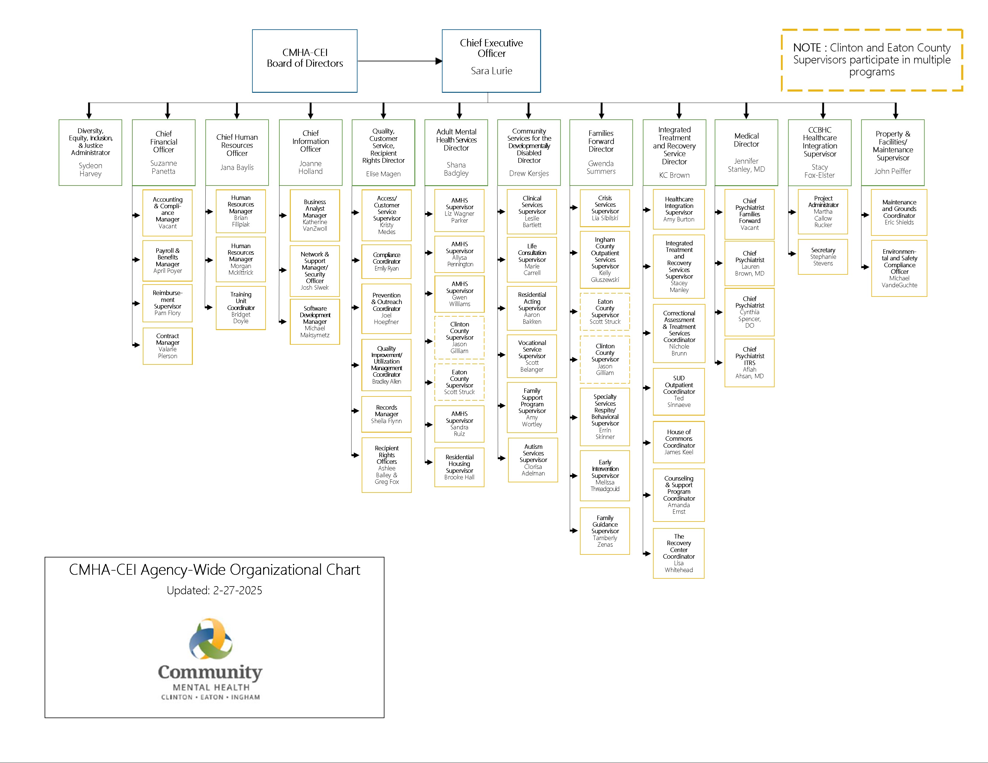 The CMHB became a managed care organization with full management in the early 1980s. In 1998, the CMHB took on the care management role for the mental health component of the Medicaid program in addition to its “safety net” role in serving non-Medicaid consumers. In 2002, a number of smaller CMHSPs were required to either affiliate or merge with other CMHSPs to form PIHPs which covered at least 20,000 Medicaid enrollees. As a result of this mandate CMHB became an authority now called the Community Mental Health Authority of Clinton, Eaton, and Ingham Counties and formed the Community Mental Health Affiliation of Mid-Michigan with Gratiot, Ionia, Manistee, Benzie and Newaygo County CMHs. In 2014, CMHA-CEI joined with 12 other CMHs to form the current Mid-State Health Network Prepaid Inpatient Health Plan (PIHP).